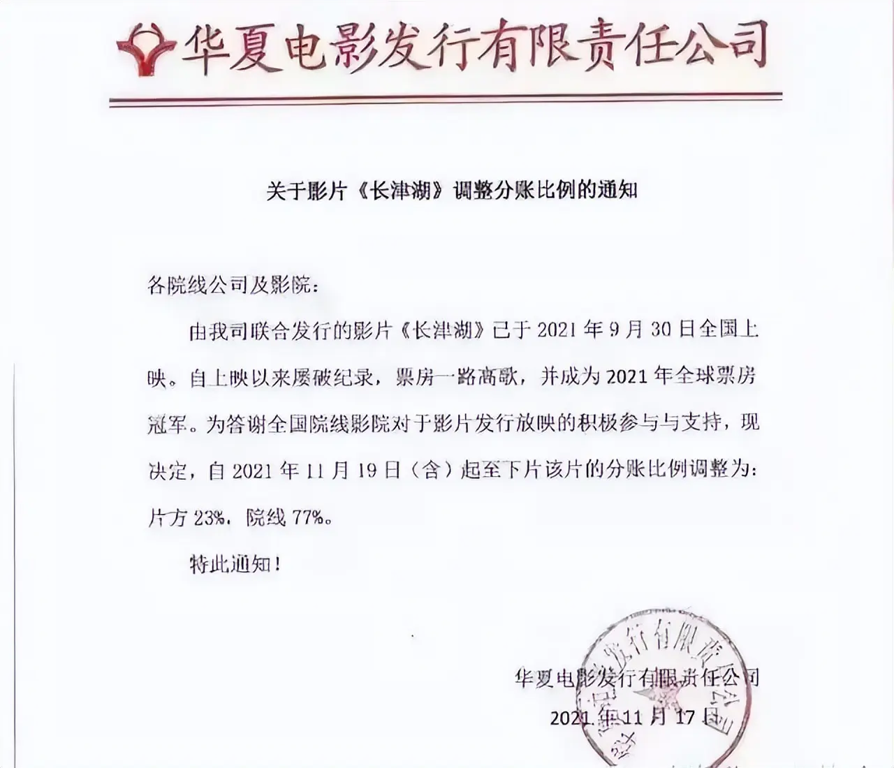 这个道理,之前博纳总裁于冬看明白了,所以《长津湖》盈利之后,博纳宣布调整分账比例,将片方比例调至23%,院线则提高到77%,拿出利润、合作共赢。